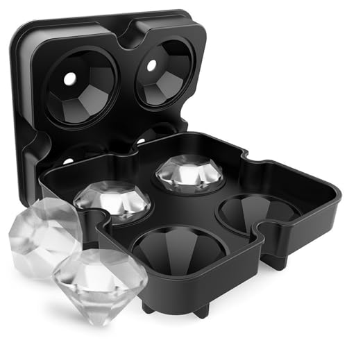 Hbbgdiy Diamond Ice Cube Trays, 4 Hole Silicone Moulds for Freezer, Safe Diamond-shaped Ice Trays for Whiskey, Gin Glasses, Cocktail, and Home Bar Use