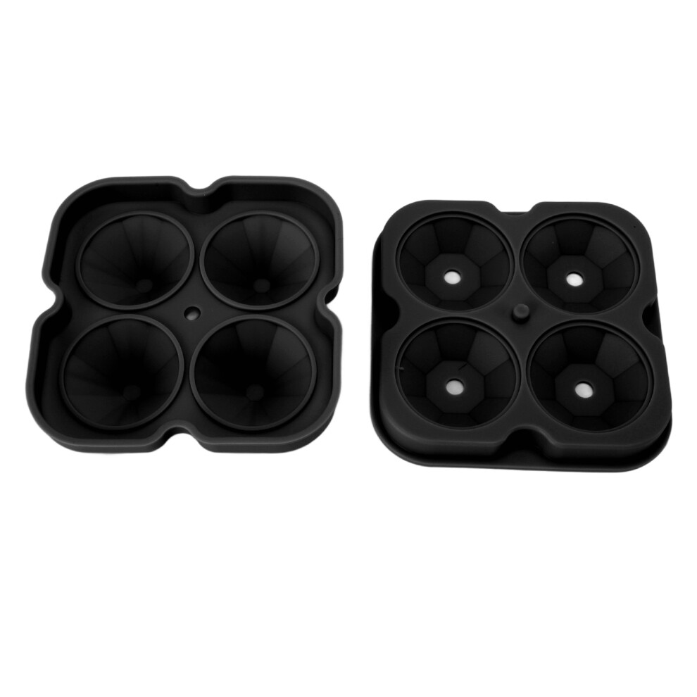 Set of 4 Diamond Ball Round Ice Cube Trays and Molds Food Grade Silicone Covered Easy Release Reusable for Ice Cube Making Whiskey Drinks Black