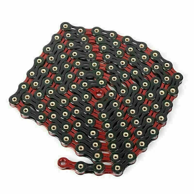 OPIGJUFD Bicycle Chain 11s Chain Diamond Like Coating 11 Speed Bicycle Road Bike Chains Full Hollow Chainset Parts For cycling(BLACK RED)