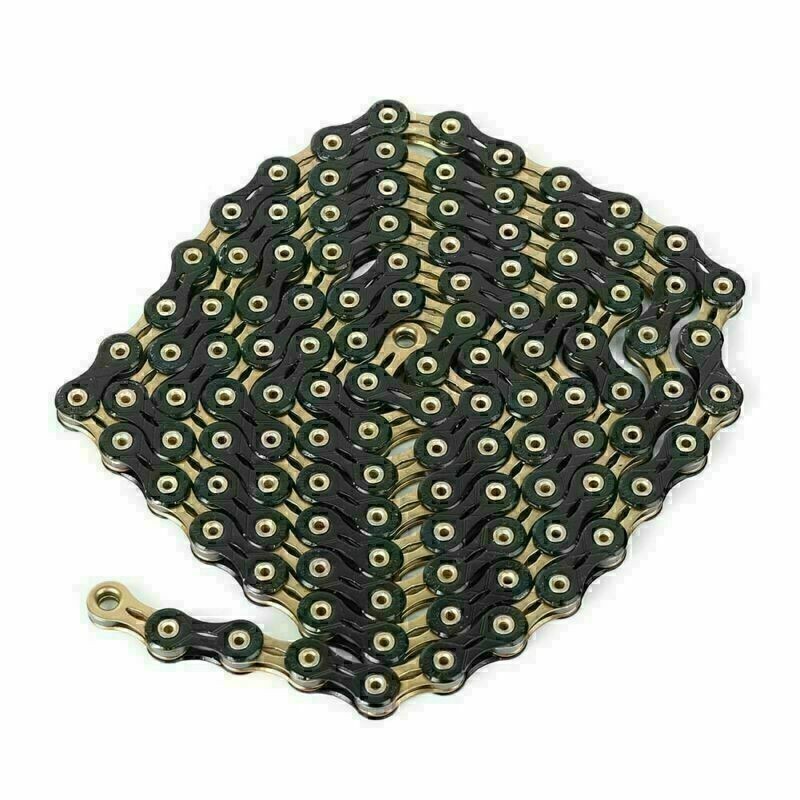 OPIGJUFD Bicycle Chain 11s Chain Diamond Like Coating 11 Speed Bicycle Road Bike Chains Full Hollow Chainset Parts For cycling(BLACK GOLDEN)