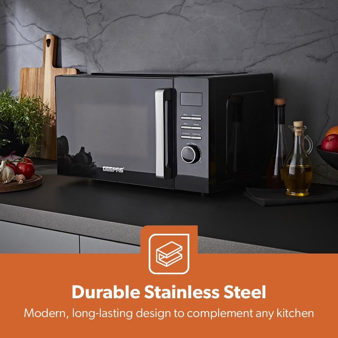 (Black) GEEPAS Digital Microwave Oven, 23L | 5 Power Levels, Reheating & Defrost Function | Digital Display 60 Minute Timer 8 Pre-set Modes