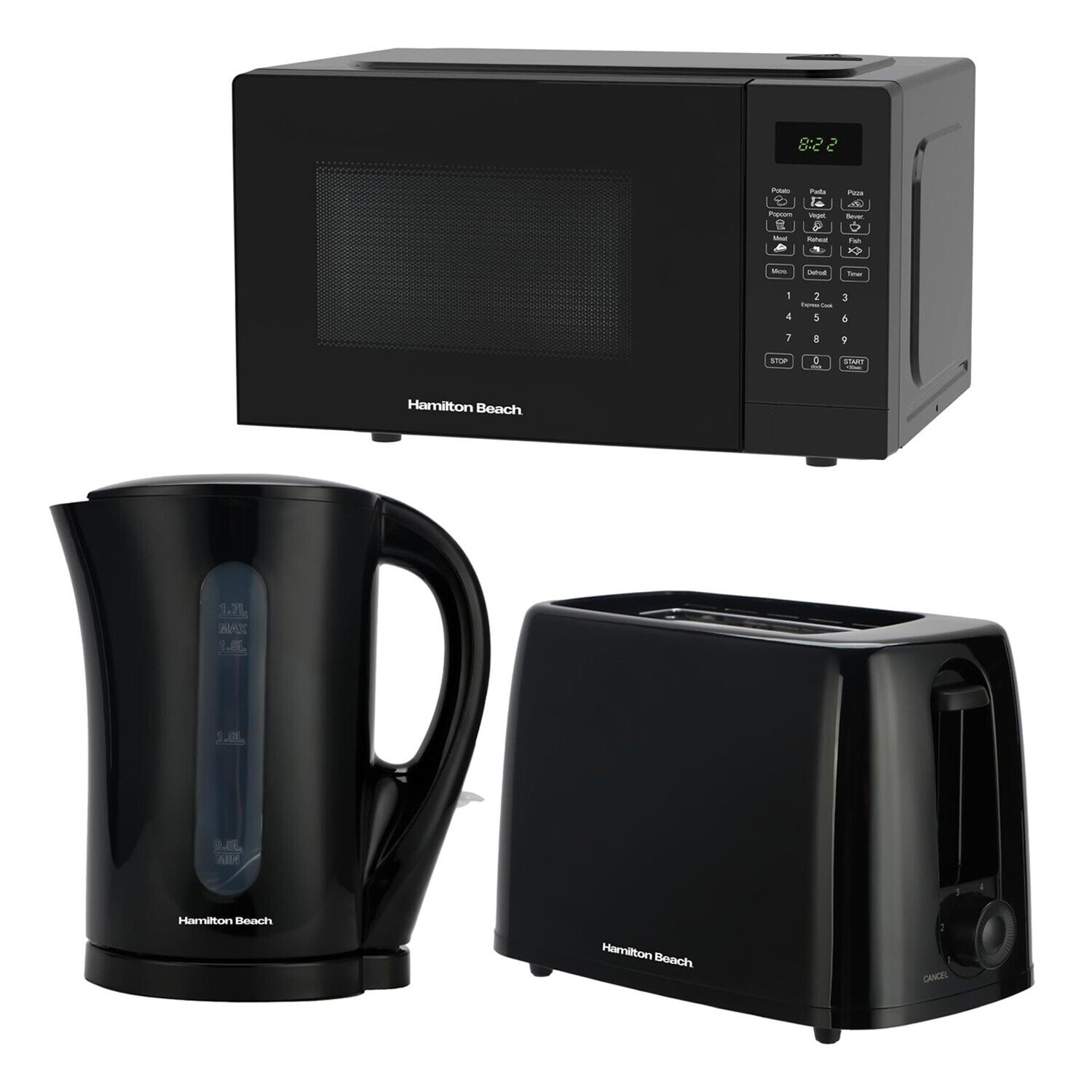 Hamilton Beach Essential Jug Kettle 2 Slice Toaster &Digital Microwave Set Black