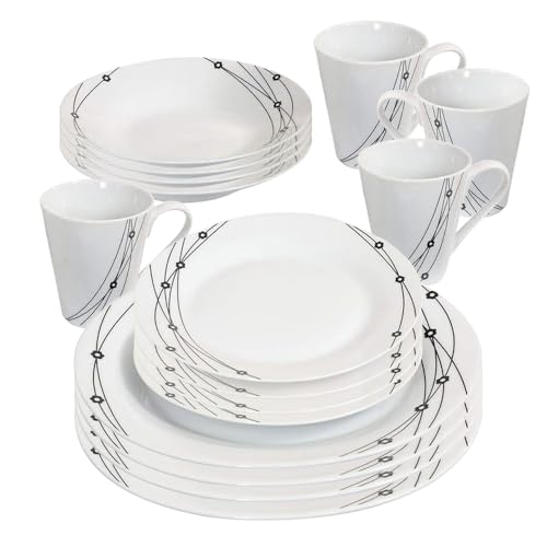Creative Tops 16 Piece Vivienne Dinner Set, Service for 4 Dinnerware Set with Elegant Design, 16 Pieces, Black & White