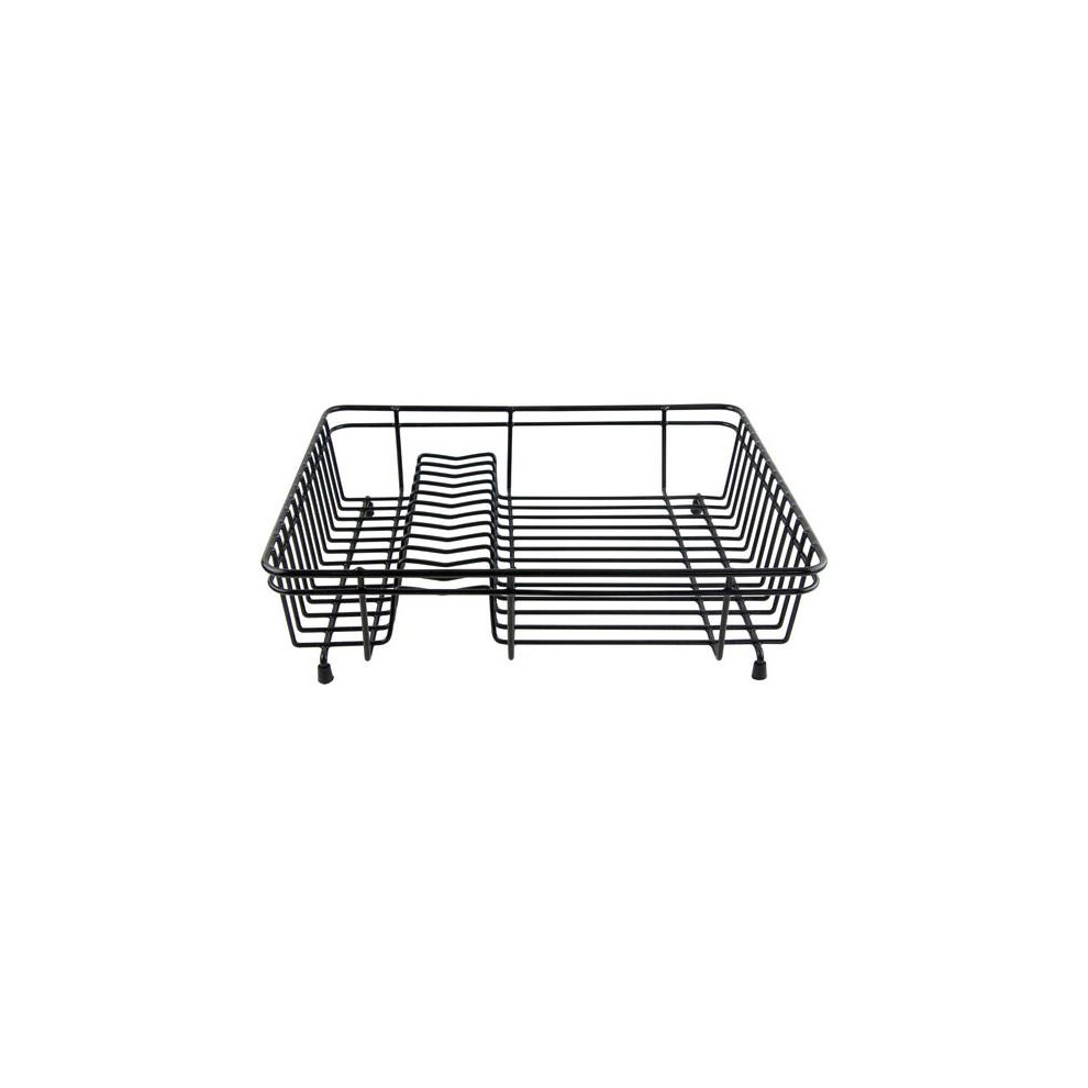 Small Black Dish Drainer Compact Coated Steel Kitchen Drying with Rubber Feet