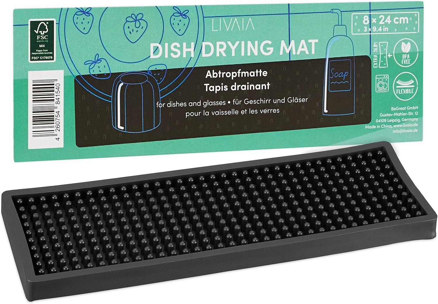 Silicone Dish Drying Mat in Black: Dish Drainer for Kitchen - Sink Organiser -