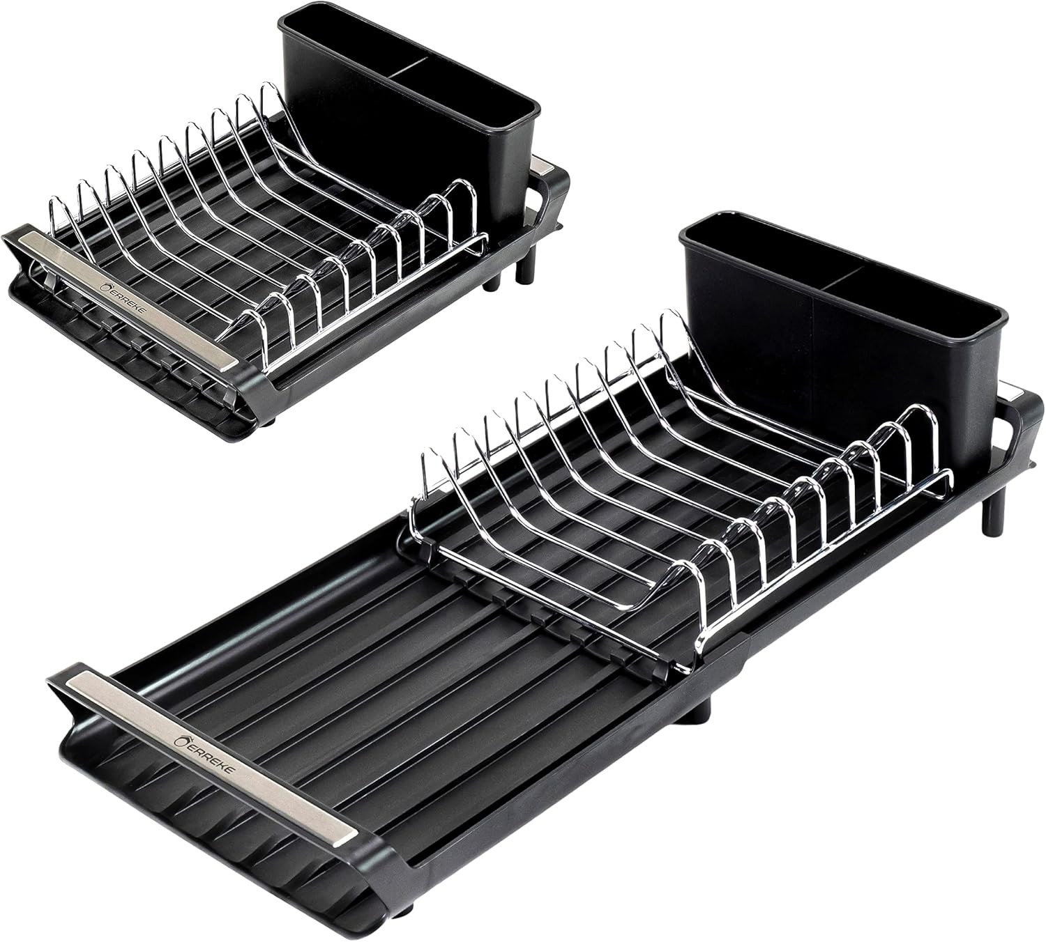 Erreke Sink Drainer Rack, Black Dish Drainer, Extendable Dish Drying Rack, Spout