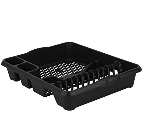 Generisch High Quality Dish Drainer for Crockery Cutlery Durable ABS Material with Practical Utensil Holder Sturdy Drip Tray for Hygienic Storage of Your (Black, 34 x 26 x 16 cm)