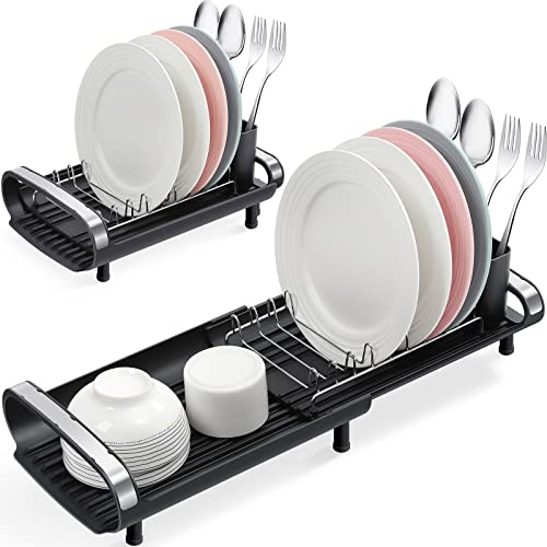 Small Dish Drainer, Expandable Dish Drainer Rack, Dish Rack With Removable Cutlery Holder, Anti Rust Small Sink Drainer, Expandable Draining Board Rack For Kitchen Counter, Black