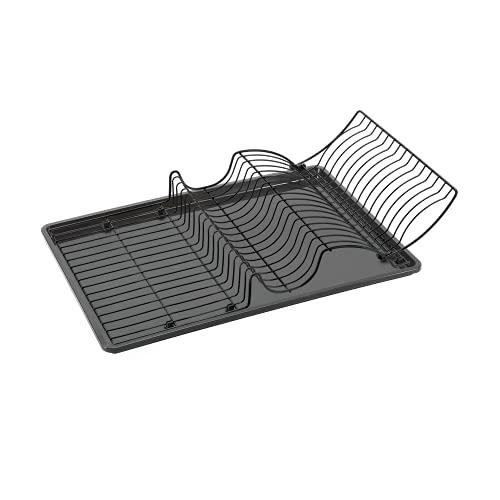 simplywire – Compact Dish Drainer – Plate Drying Rack with Drip Tray & Cutlery Basket – Small - Black Powder Coated Steel