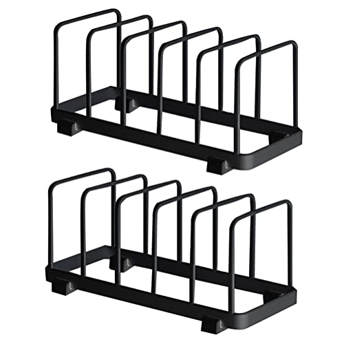 YunNasi Plate Storage Rack, Vertical Plate Rack Drainer, Cutting Boards, Bakeware, Serving Trays Holder, Lid Organizer, Cabinet Dish Rack (Black, 2 Packs)