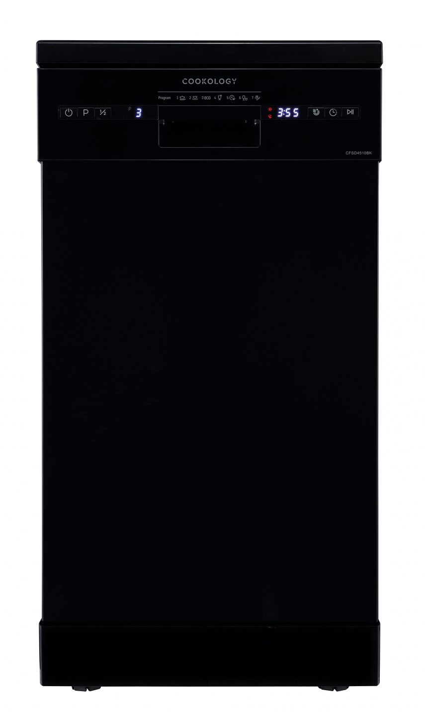Cookology CFSD4510 Slimline Freestanding Dishwasher in Black - 45cm Width - Compact Design - 10 Place Settings - 6 Wash Cycles - LED Control Panel - 8 Hour Delay Timer - Ideal for Small Families