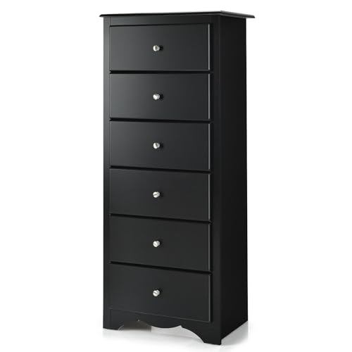 Multigot Chest of Drawers, 6-Drawer Storage Cabinet with Anti-tipping Device, Wooden Drawer Dresser Organizer for Living Room, Bedroom, Hallway and Closet (Black)