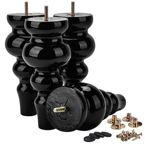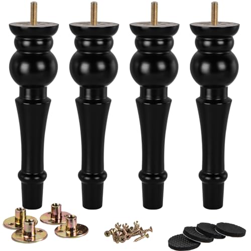 La Vane 8.5 inch / 22cm Wooden Furniture Legs, 4PCS Soild Wood Turned Spindle Black Replacement Spool Feet with Pre-Drilled M8 Inch Bolt & Mounting Plate for Couch Sofa Armchair Dresser Chest