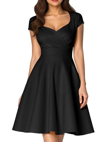 DRESSTELLS Women's Cocktail Dress, Black Formal Wedding Guest Evening Prom Party Aline Church Funeral 1950s Midi Dresses for Teens Black M