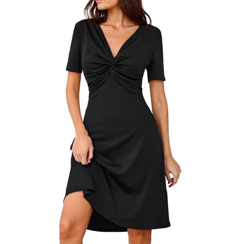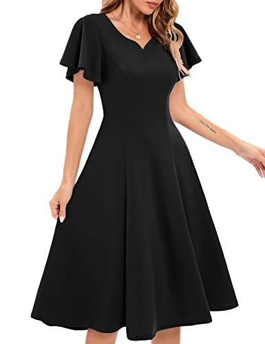 HomRain Black Cocktail Prom Dress for Funeral Casual Semi Formal Knee Length Wedding Guest Dress for Women Elegant Graduation Party with Short Sleeves Midi Evening Party Dresses, Black M