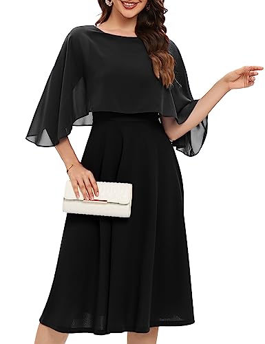 DRESSTELLS Wedding Guest Dresses for Cocktail Party, Vintage Modest Formal Prom Evening Church Bridesmaid Casual Funeral Dress, Spring 2026 Black M