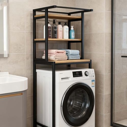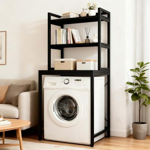 kumamart Space-Saving 3-Tier Over Washer and Dryer Storage Shelf, Heavy-Duty Over Washing Machine Storage Unit, Rack for Laundry & Bathroom(Black,Without towel bar)