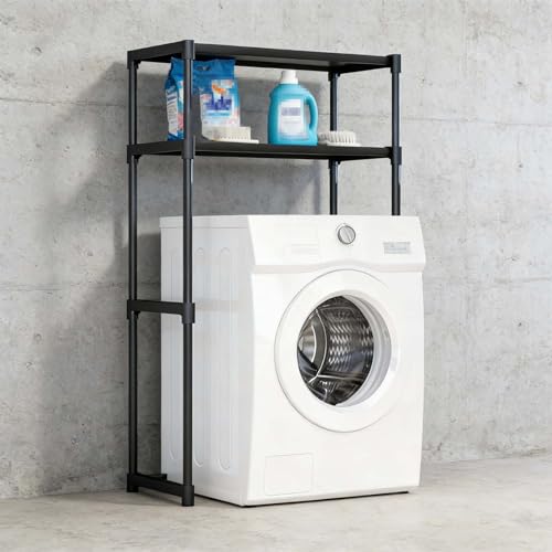 kumamart 3-Tier Home Laundry Organizer -Over Washer and Dryer Shelves, Over Washer Shelf, Washing Machine Storage Rack - Adjustable Shelving for Small Spaces(Black)