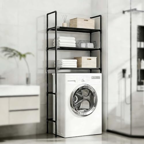 kumamart Durable Over Washing Machine Storage Organizer with Adjustable Shelves | Perfect Over Washer and Dryer Shelves for Laundry Room, Bathroom(Black)