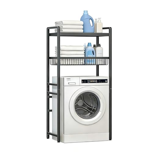 kumamart 3-Tier Over Washer And Dryer Shelves, Laundry Room Shelf With Storage, Easy To Clean, Installation(Black,Washing machine)