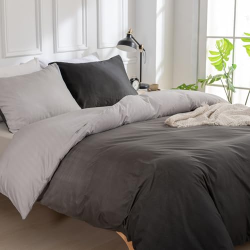 F.Y.Dreams 100% Washed Cotton Duvet Cover for Weighted Blanket 60"x80" with 8 Ties, Long Side Zipper/Black/Grey/Just Duvet Cover