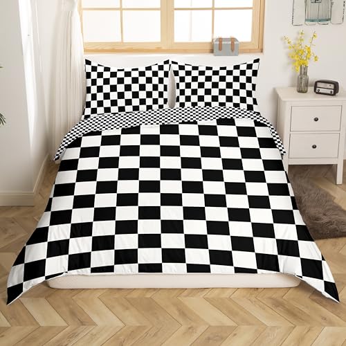 Buffalo Check Bedding Set Modern Black White Plaid Duvet Cover Double for Kids Women Men Soft Reversible Geometric Gingham Comforter Cover Farmhouse Nordic Grid Pattern Bedroom Decor Bedspread