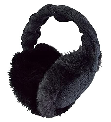 Airmoon Ear Muffs for Women - Winter Ear Warmers - Soft & Warm Cable Knit Furry Fleece Earmuffs - Ear Covers for Cold Weather (black)