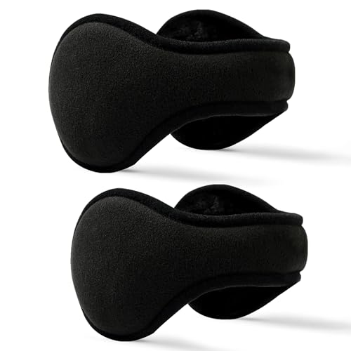 GERGELLA Unisex Winter Ear Muffs - Black, Soft Fleece Earmuffs for Men Women, Cold Weather Ear Warmers