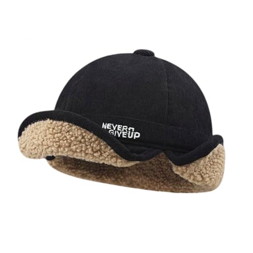Rayson Mens Trapper Hats Winter Warm Rolled-up Brim Thickened Aviator Cap with Ear Muffs Unisex Beanie with Plush Lining(Black)
