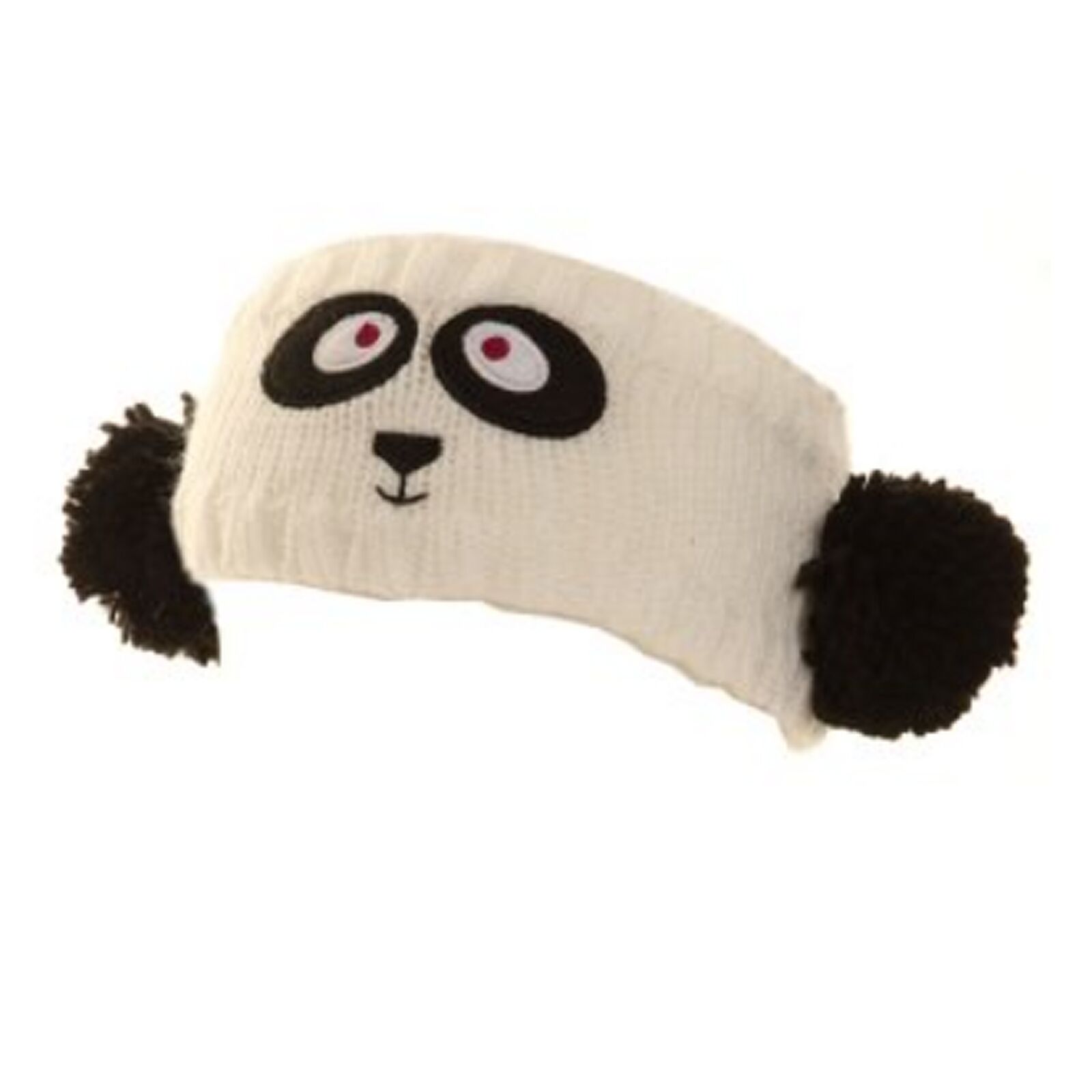 Panda Bear Headband Black White Pom Pom Ear Warmer Muffs Knitted Winter NEW