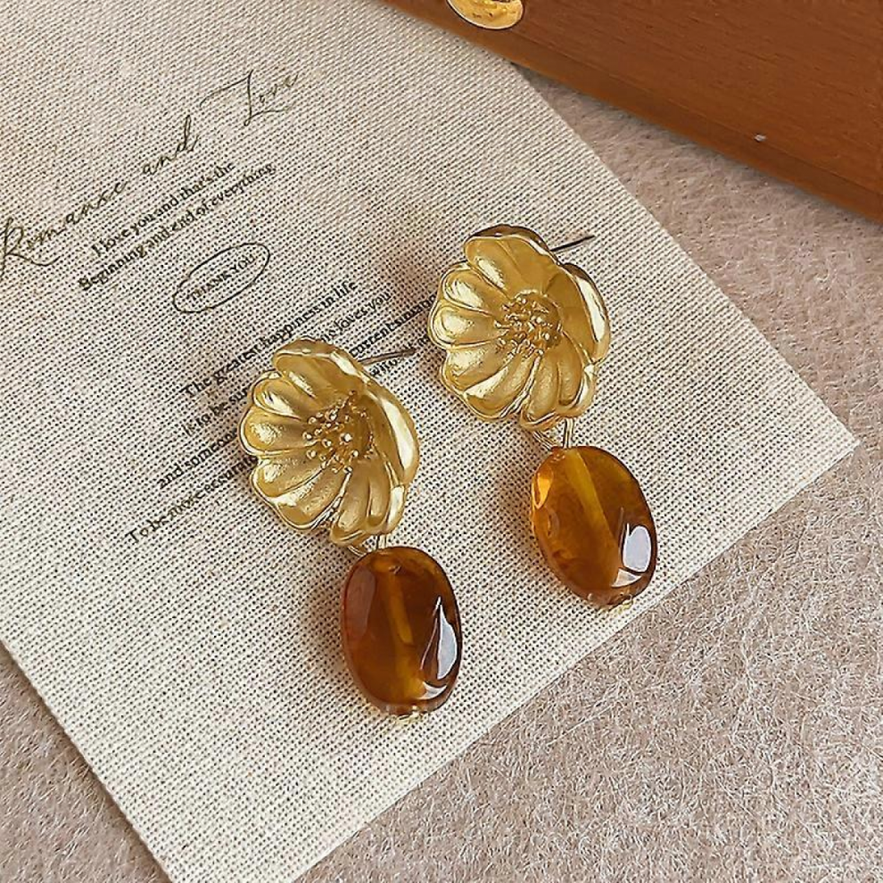 Ymapinc Black Gold Flower Stud Earrings,Large Crystal Black Earrings for Women Statement Floral Cluster Design for Bridal Wedding Party Prom Formal Events