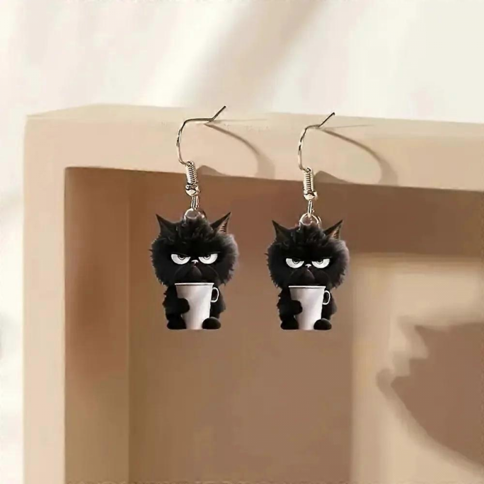 2D Flat Angry Black Cat Acrylic Earrings for Women Girls Cute Animal Fashion GiftED4414