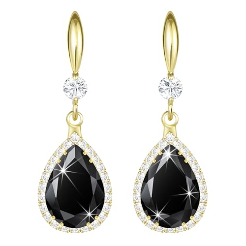 Linawe 14K Gold Black Dangle Earrings for Women Trendy, Imitation Diamond Drop Chandelier Rhinestone Cubic Zirconia Crystal Earrings Dangling, Teardrop Birthstone Dangly Earrings
