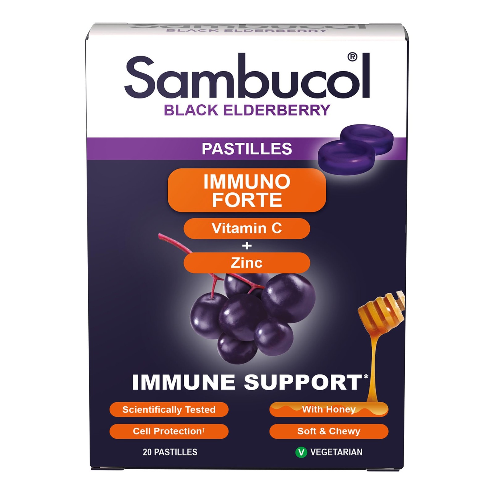 Sambucol Natural Black Elderberry Immuno Forte Chewable Pastilles | Vitamin C |