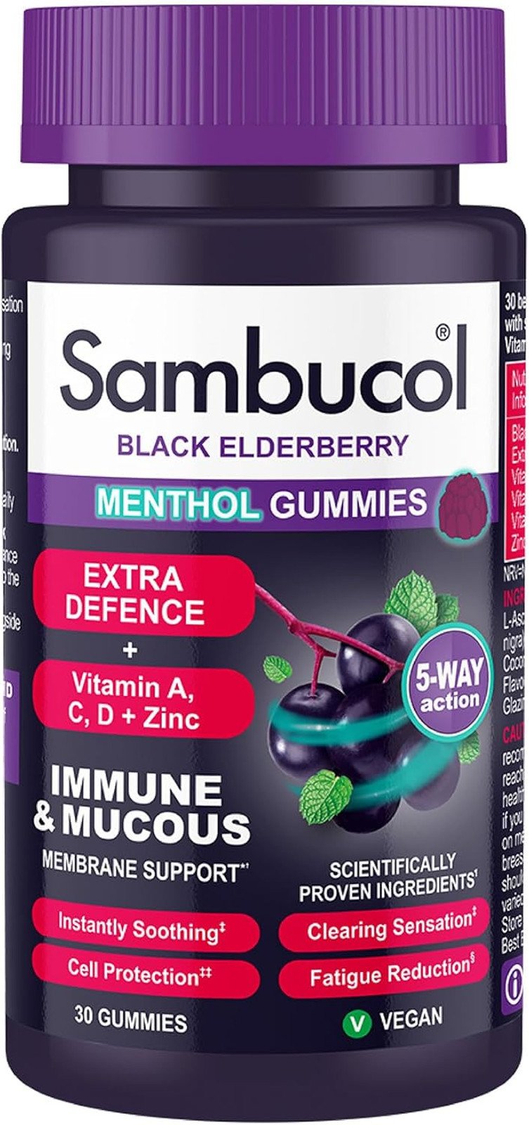 Sambucol Natural Black Elderberry Extra Defence Menthol Gummies |Vitamin a | Vit