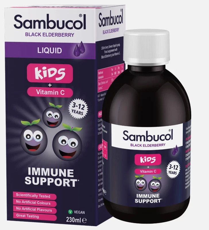 Sambucol Black Elderberry Liquid - KIDS - 230ml - EXPIRY 12/2027 - VEGAN ✅️