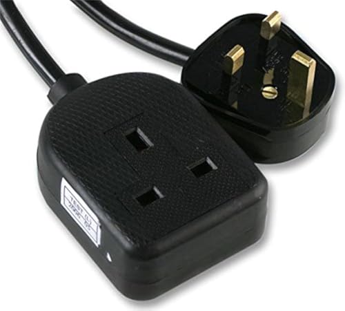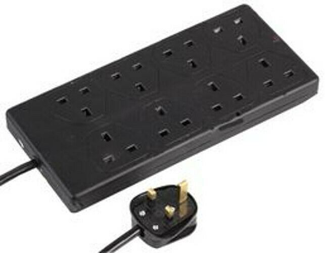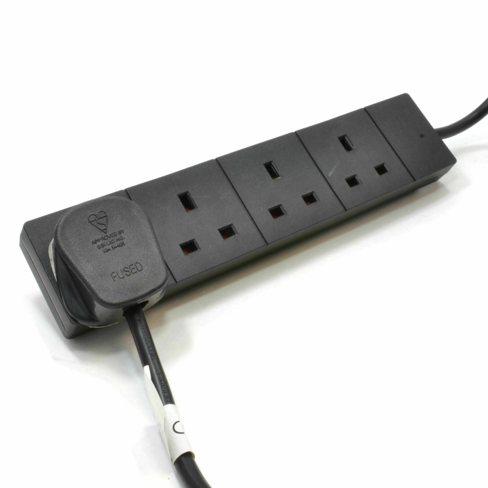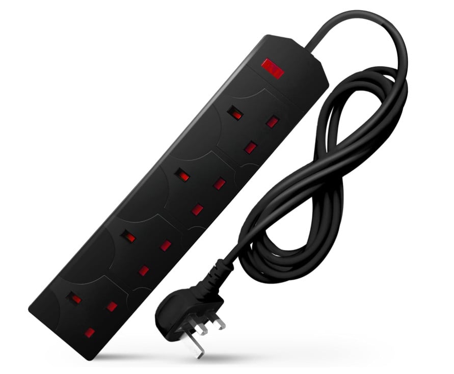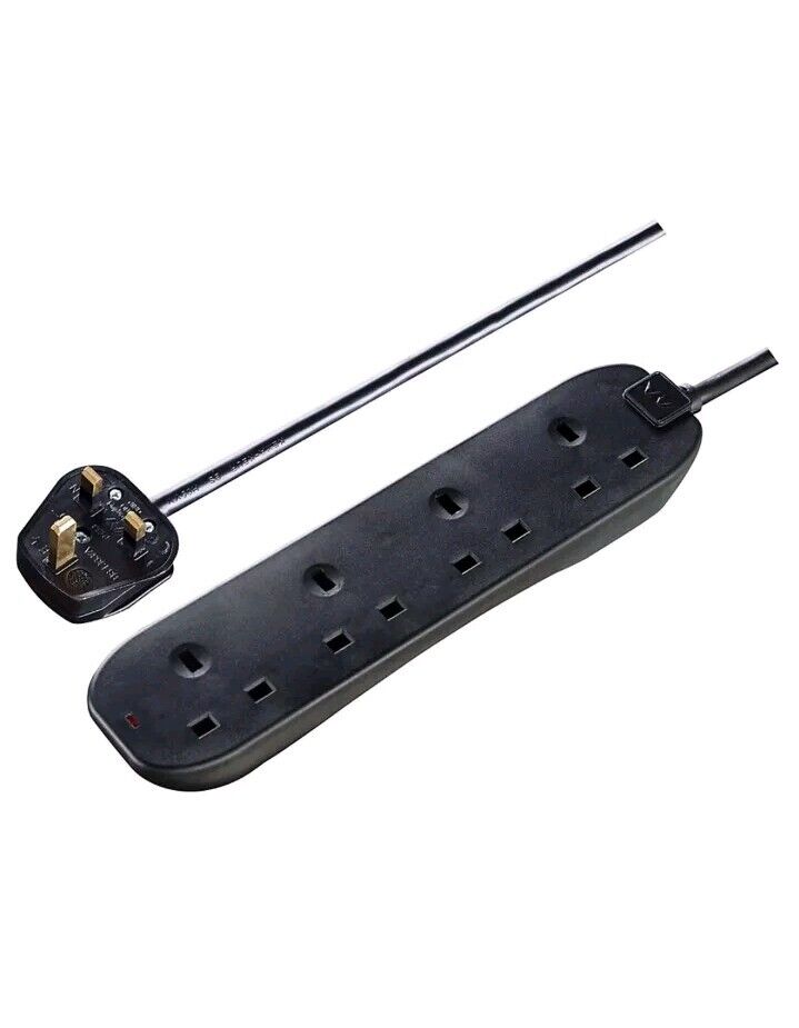1m 4 Gang BLACK Extension Lead Way UK 13A Trailing Socket Mains Power