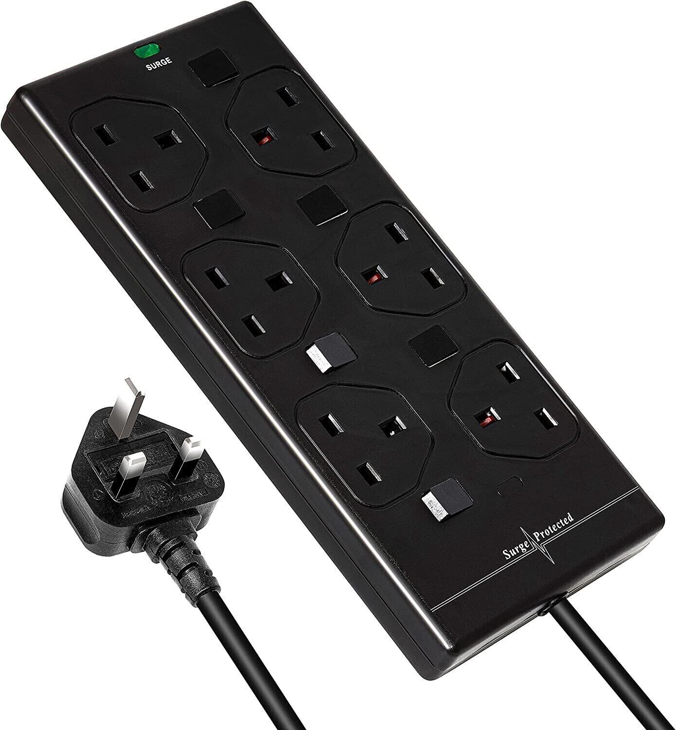 Pro Elec 6 gang 8m Surge Protected Black Extension Lead