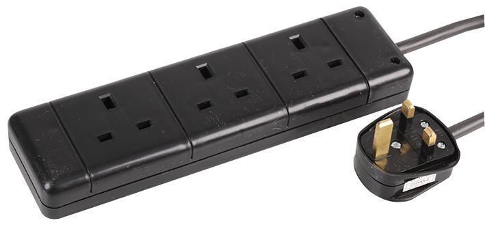 PRO ELEC - 3-Gang Extension, Black, 2m Lead
