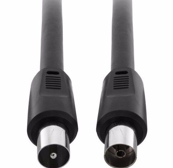 2M TV FREEVIEW RF COAXIAL MALE PLUG TO FEMALE SOCKET BLACK CABLE, EXTENSION LEAD