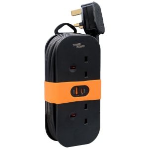 Tower 13A 2 Socket Black Clip On Extension Lead with USB - 1.5m