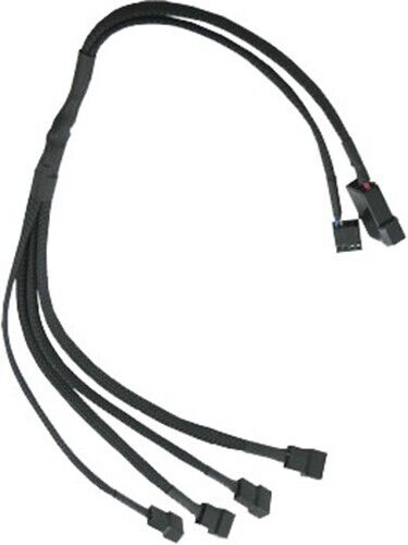 3/4 pin 12V PWM Fan Y Splitter 1-to-4 Black Sleeved Extension Cable Lead 42cm