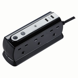 Masterplug 13A 4 Socket Black Extension Lead with Surge Protection & USB - 1m