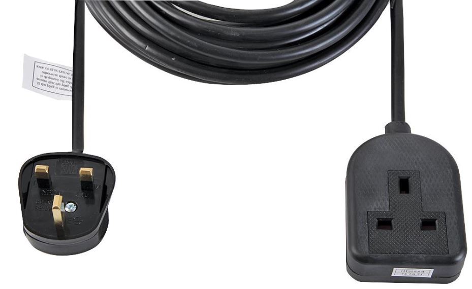 HEAVY DUTY BLACK 15M EXTENSION LEAD CABLE 16 AMP 1.5MM2 FRAME DESIGN