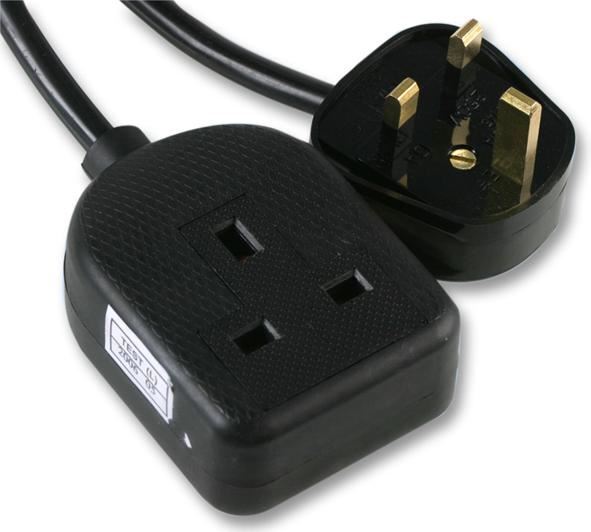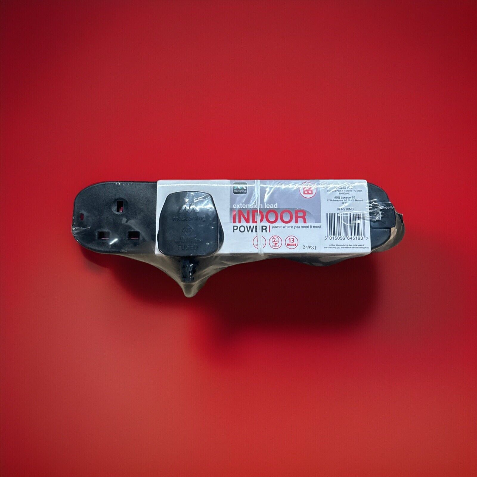 Black-Rubberised Extension Lead Trailing Socket End Single 2 Gang 13 amp