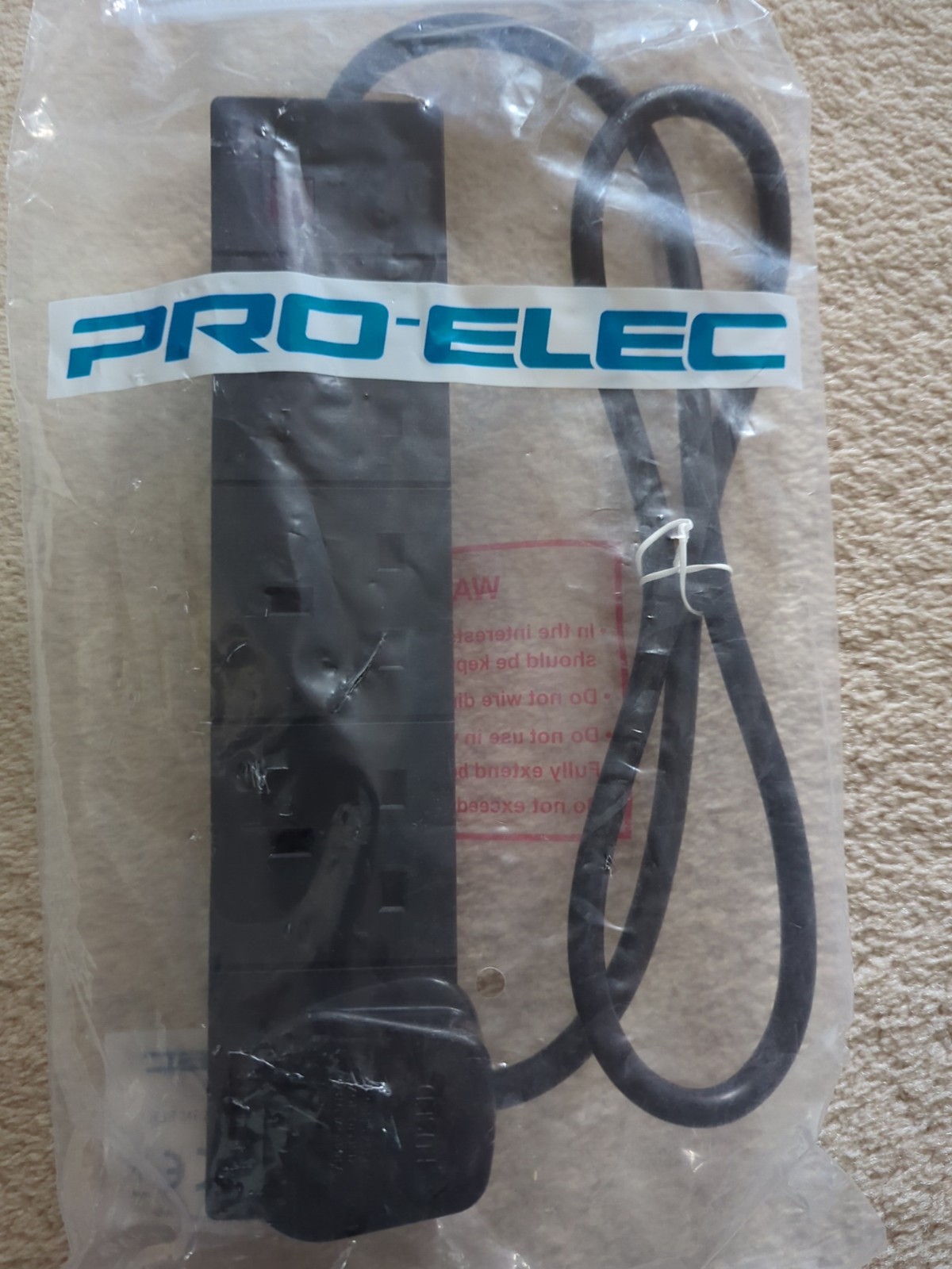 Pro Elec PELB1520 4 Gang Extension, Black, 1m Lead - New