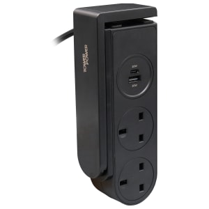 Black Extension Lead 1M with 3 USB Slots (1 USB C), 2 Gang Short Extension Lead