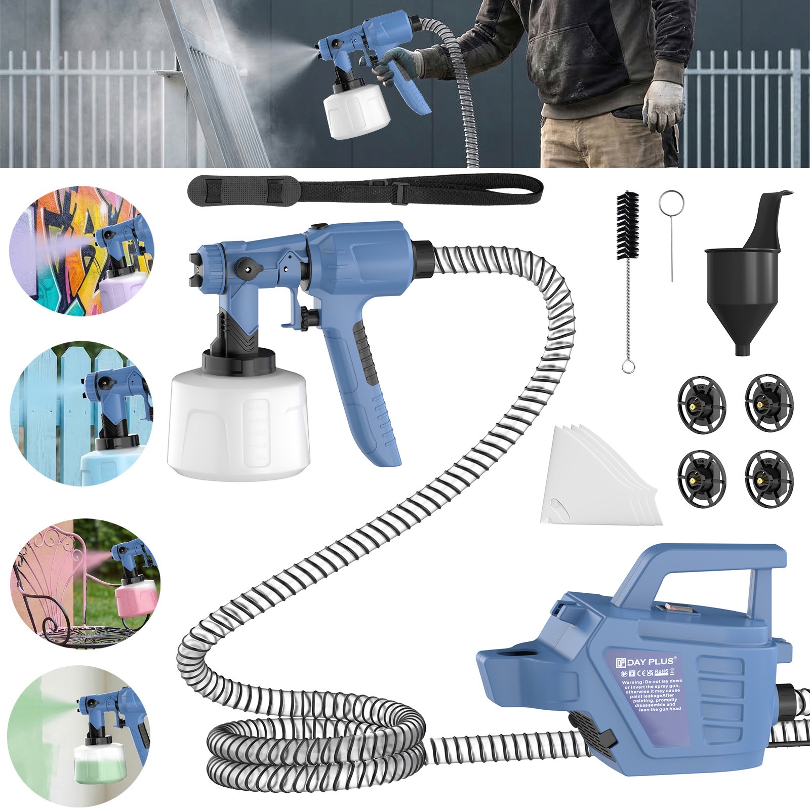 Electric Paint Sprayer Dayplus Airless HVLP Handheld Spray Gun Garden Fence 2026