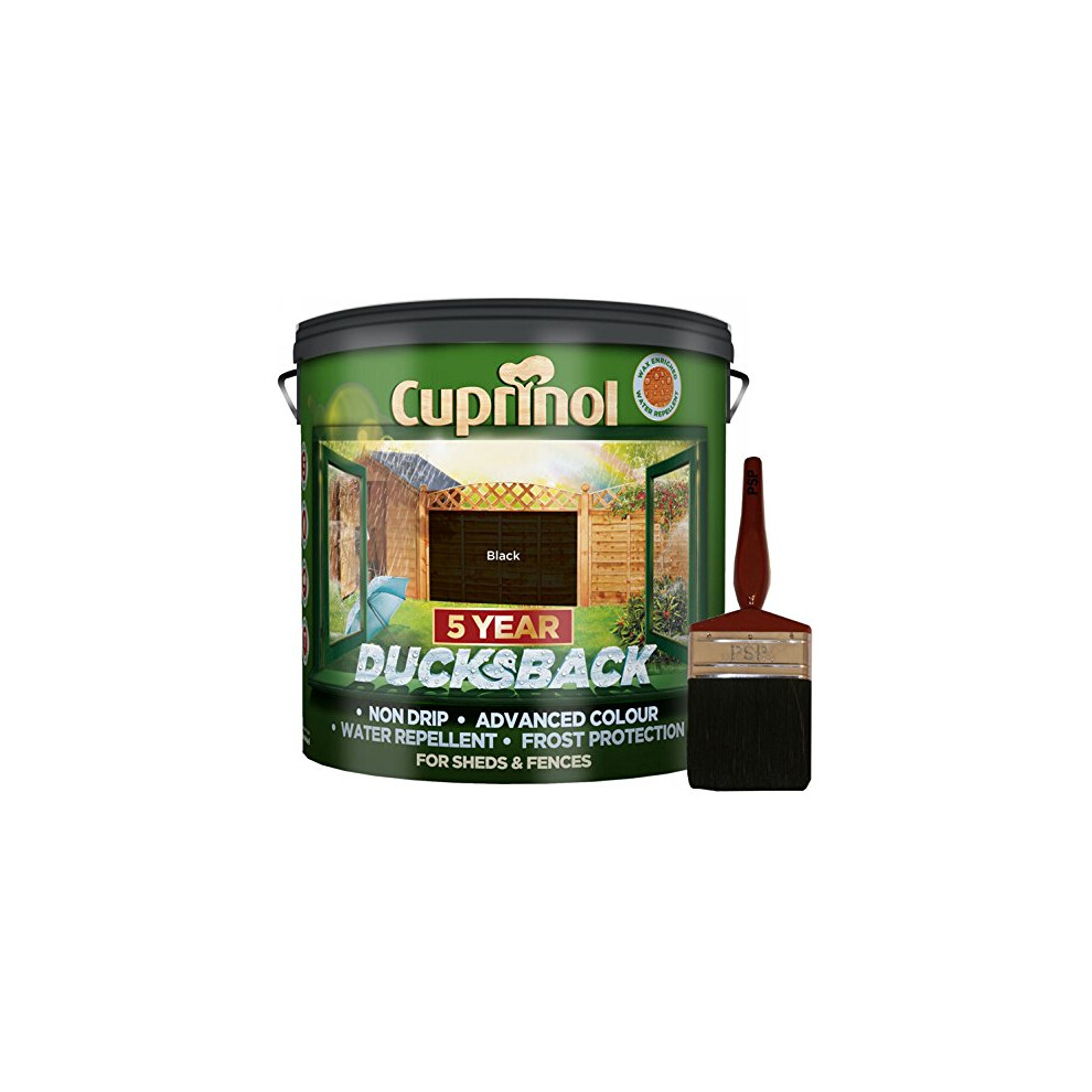 New 2018 Cuprinol Ducksback Shed & Fence Paint 9 Litre BLACK. Non Drip, Water Repellent and Frost Defence. Protection for 5 Years. Includes PSP 4?