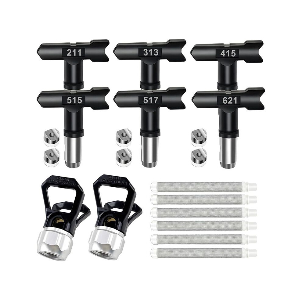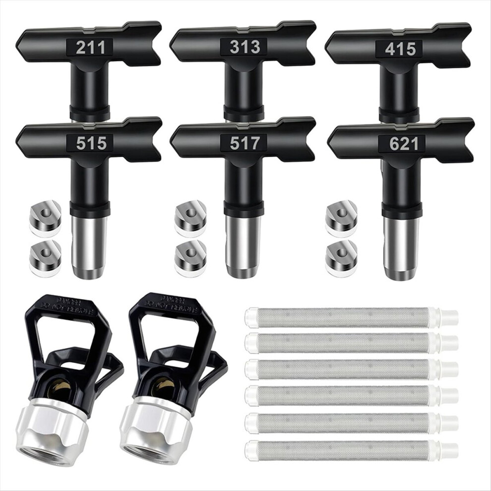 Airless Paint Set, 6 Airless Paint Double Sided Nozzles, 2 Nozzle Guards and 6 Filters for Construction, Fence Black